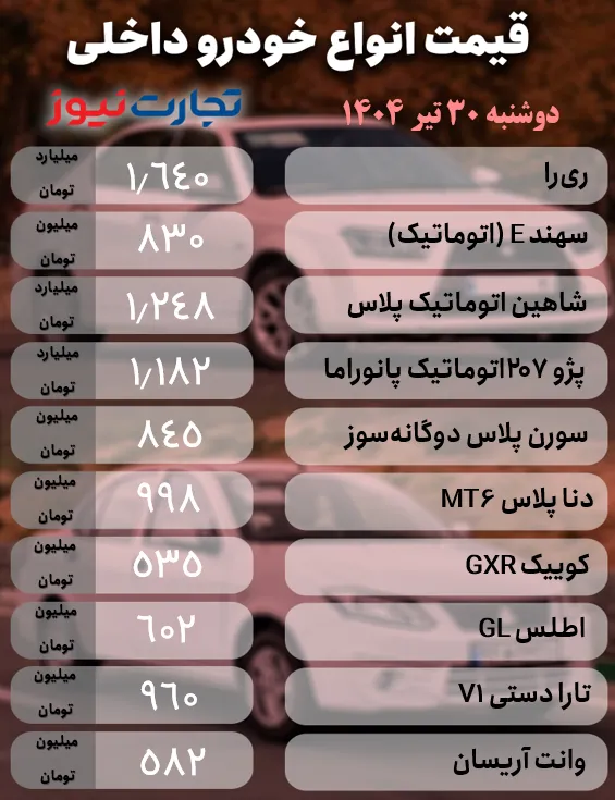 قیمت خودروهای داخلی