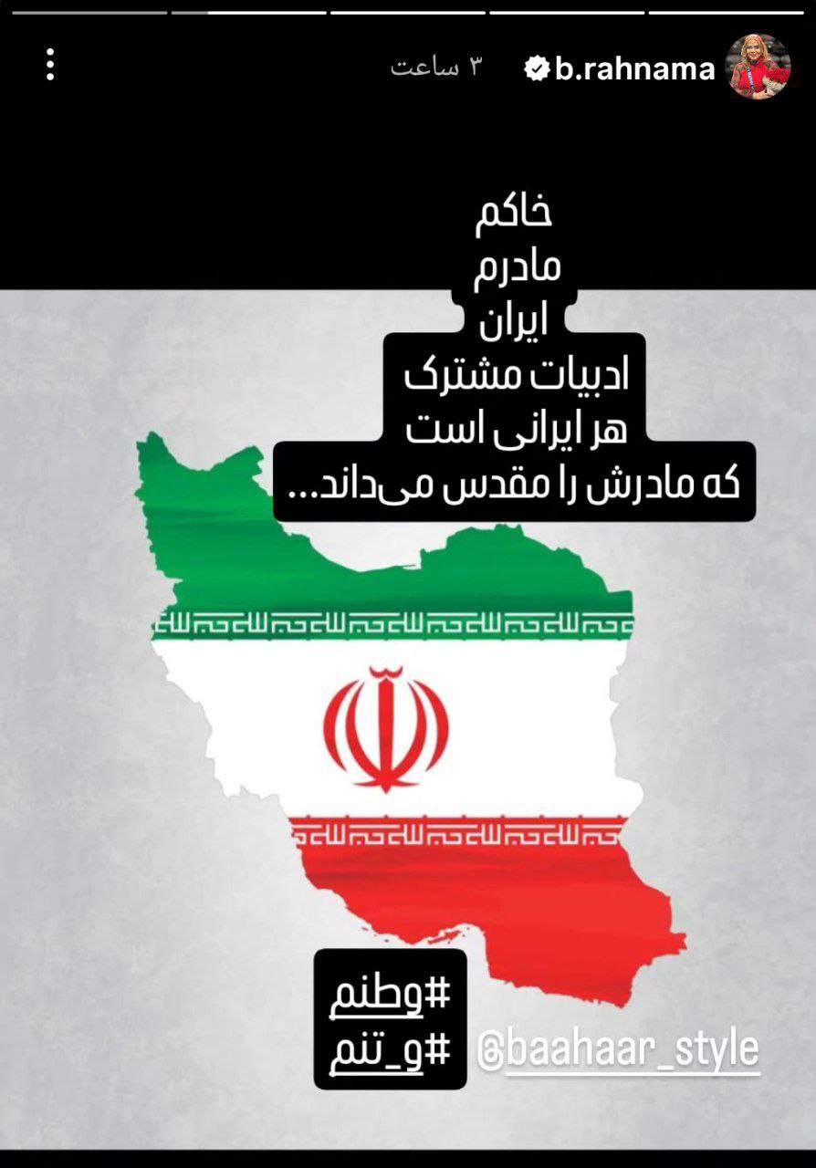 استوری دلخراش بهاره رهنما در پی حملات اسرائیل به ایران