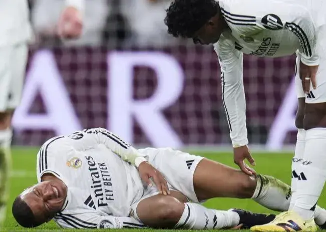 این مهاجم سابق پاری سن ژرمن در دقیقه ۷۵ مسابقه در ورزشگاه سانتیاگو برنابئو پس از مصدومیت از ناحیه مچ پا در درگیری با دکلان رایس، زمین بازی را ترک کرد. امباپه مستقیماً به رختکن رفت، در حالی که قادر به تحمل وزن روی پای راستش نبود و این اتفاق نگرانی زیادی را به همراه داشت.