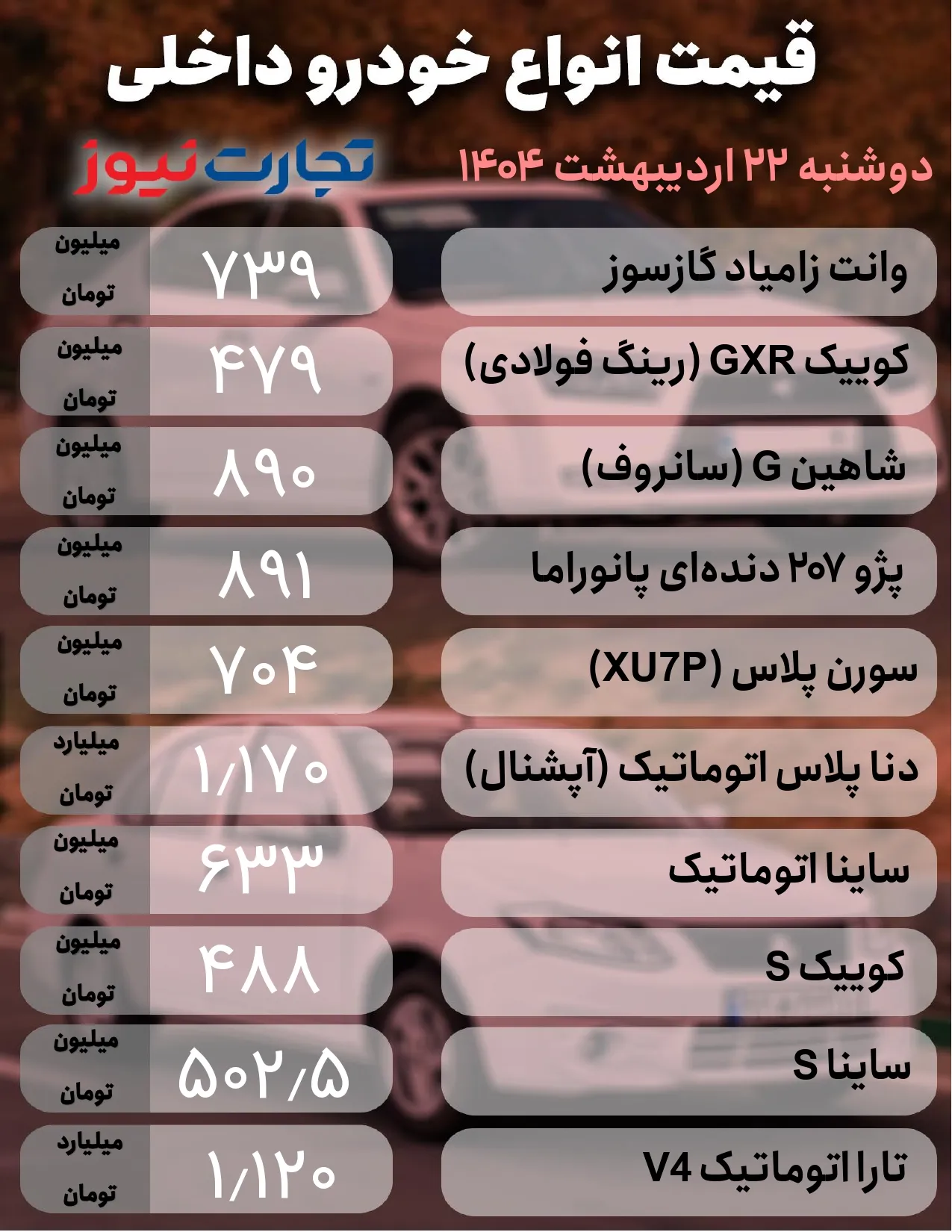 قیمت خودرو امروز 22 اردیبهشت ماه 1404 | قیمت این خودرو ریزش کرد