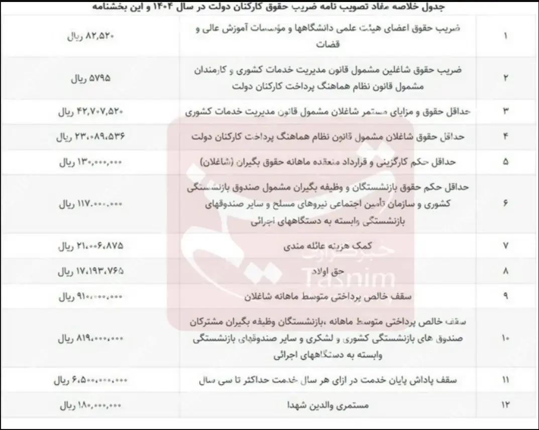 حقوق ۱۴۰۴ کارمندان دولت تعیین شد: حداقل ۲۳.۹ میلیون ریال، سقف ۹۱ میلیون تومان!