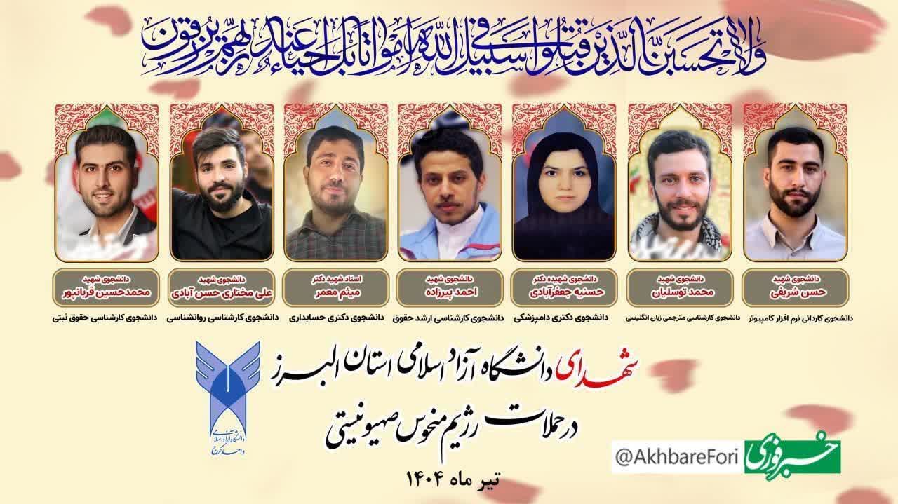 در حملات رژیم صهیونی به کشورمان 7 دانشجو دانشگاه آزاد کرج به شهادت رسیدند.