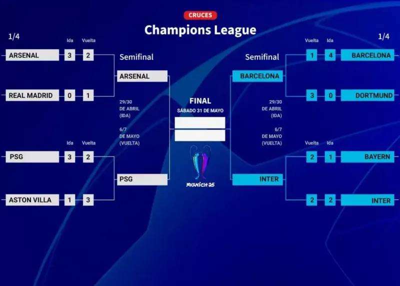 حالا جدول نیمهنهایی هم طبق قرعهکشی یوفا مشخص است. اینتر میلان و بارسلونا به مصاف همدیگر خواهند رفت. دو تیم صدرنشین سری A و لالیگا آخرین بار در مرحله گروهی این رقابتها در سال ۲۰۲۲ مقابل یکدیگر قرار گرفتند که در بازی اول اینتر ۱-۰ بارسا را شکست داد و در بازی دوم دو تیم به تساوی ۳-۳ رسیدند.