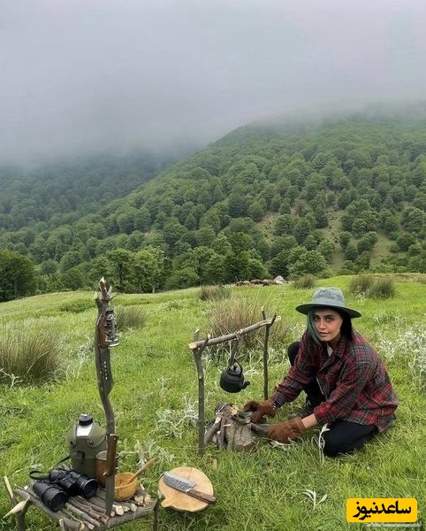 تصویری از الناز شاکردوست در طبیعت در حال درست کردن اجاق منتشر کرده است.