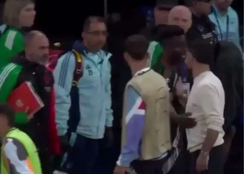 در حالی که ابتدا به نظر میرسید ساکا و کارواخال مشغول احوال پرسی بایکدیگر هستند اما ناگهان ملاقات ناگهانی آنها شکل دیگری به خود گرفت و دوربین های تلوزیونی صحنه بگو مگوی جدی کاپیتان رئال و ستاره آرسنال را شکار کردند.